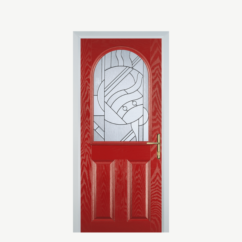 Introducing the Door E 2 Panel 1 Arch in Red Zinc Art Abstract, an exquisite addition to any home that combines modern aesthetics with exceptional durability. This composite front door not only enhances your home’s curb appeal but also provides robust security and energy efficiency.