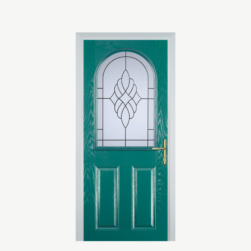 Introducing the Door E 2 Panel 1 Arch in a stunning Turquoise Blue finish, a perfect combination of elegance and durability for your home. This composite front door not only enhances your entryway but also provides security and energy efficiency. Designed with both aesthetics and functionality in mind, it stands out as a statement piece that complements various architectural styles.