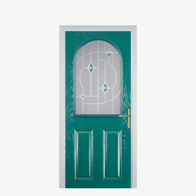 Introducing the Door E 2 Panel 1 Arch in a stunning Turquoise Blue Murano Green, a perfect fusion of style and functionality for any entrance. This beautifully crafted composite front door not only enhances your home’s curb appeal but also provides durability and security, making it an ideal choice for homeowners seeking to make a statement.