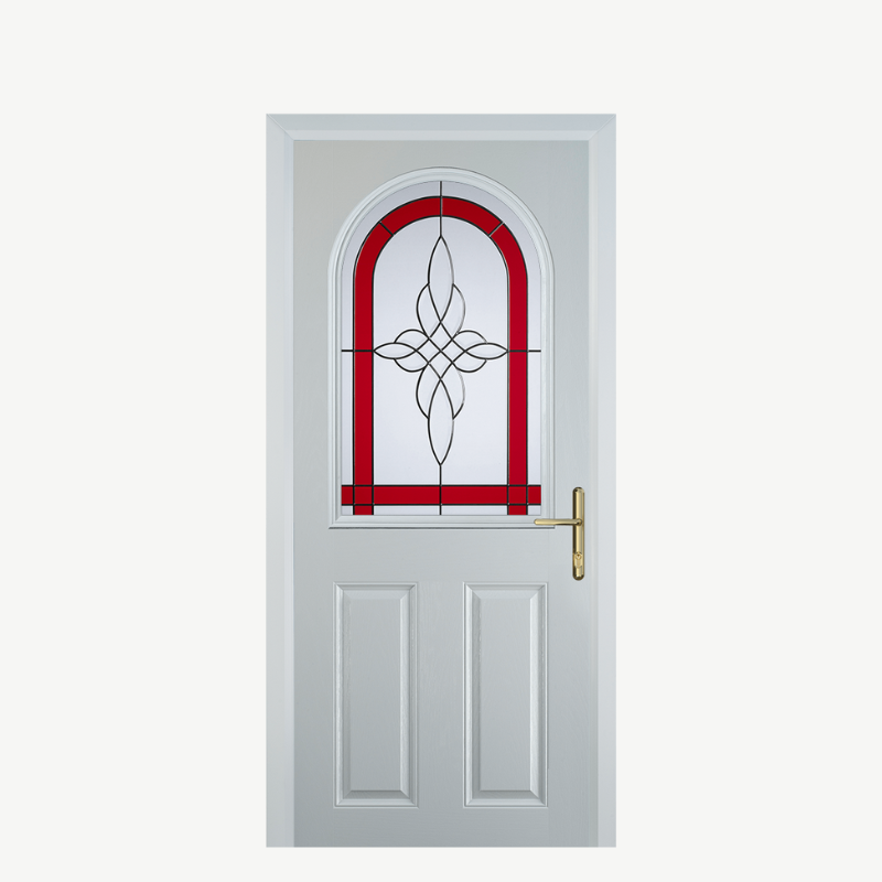 Introducing the Door E 2 Panel 1 Arch in White Crystal Harmony Red, a stunning addition to any home. This composite front door combines elegance and durability, making it a perfect choice for homeowners seeking both style and security. With its vibrant red hue and sophisticated design, it not only enhances your curb appeal but also welcomes guests with a warm, inviting atmosphere.