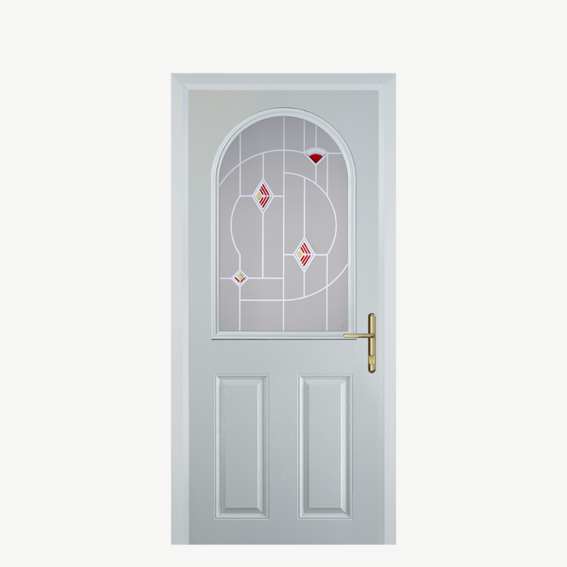 Introducing the Door E 2 Panel 1 Arch in White with a striking Murano Red accent, a perfect fusion of contemporary style and robust functionality. This eye-catching composite front door is designed to enhance your home's entrance while ensuring security and durability.