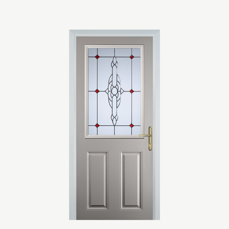 Constructed from premium composite materials, this door is designed to withstand the elements while requiring minimal upkeep. To maintain its exquisite finish, simply clean with a damp cloth and mild soap. Elevate your entryway with the Door F 2 Panel in Agate Grey Crystal Bohemia Red—where style meets substance.