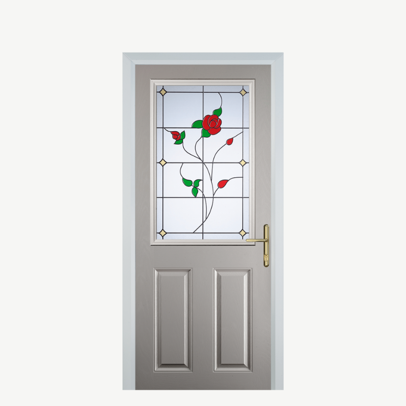 Introducing the Door F 2 Panel 1 Square in Agate Grey English Rose, the perfect blend of elegance and durability for your home. This striking composite front door not only enhances your entryway but also offers superior performance against the elements, ensuring your home remains secure and stylish.