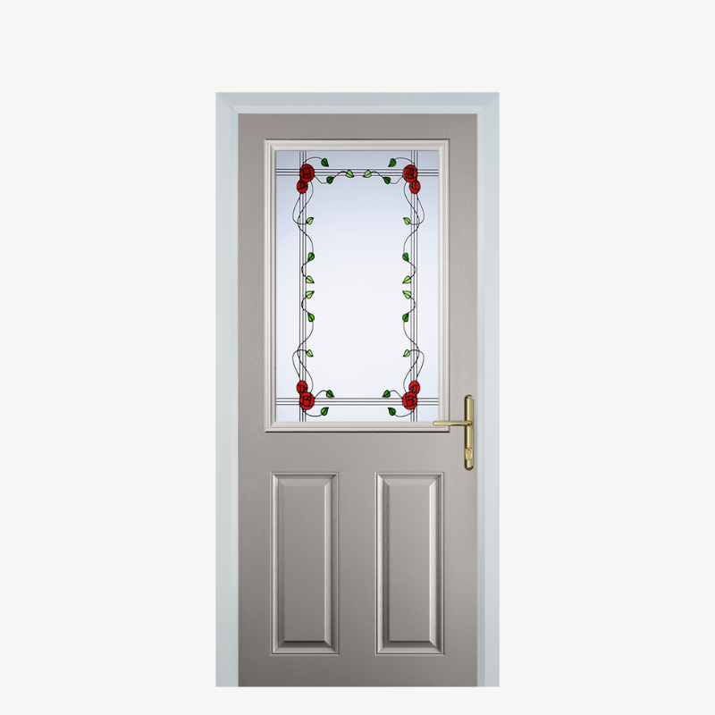 Introducing the Door F 2 Panel 1 Square Agate Grey Mackintosh Rose, an exquisite blend of contemporary design and durable craftsmanship. This stunning composite front door not only enhances your home's curb appeal but also ensures optimal security and insulation. Perfect for those seeking a modern touch with classic elegance, this door promises to be a striking focal point for any entrance.