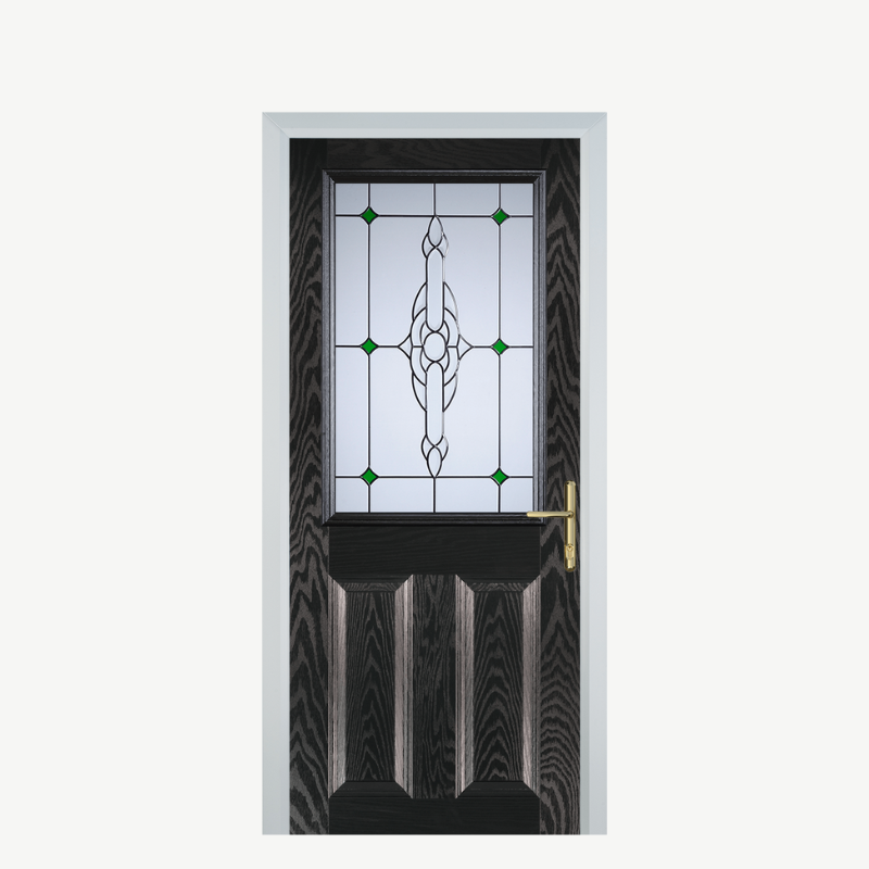 Introducing the Door F 2 Panel 1 Square in Black Brown Crystal Bohemia Green, a stunning addition to any home that elevates both style and security. This composite front door combines modern aesthetics with robust functionality, making it a perfect choice for those who value elegance and durability.