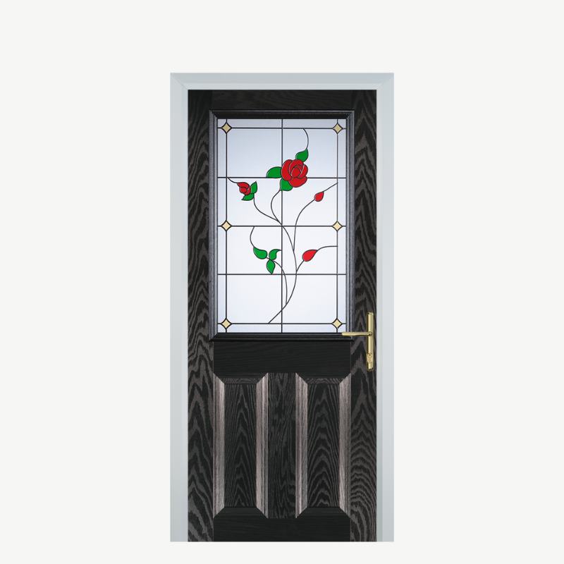 Introducing the Door F 2 Panel 1 Square Black Brown English Rose, a sophisticated addition to your home that seamlessly combines elegance with functionality. Designed for those who appreciate style and durability, this door enhances your entrance while providing security and insulation.