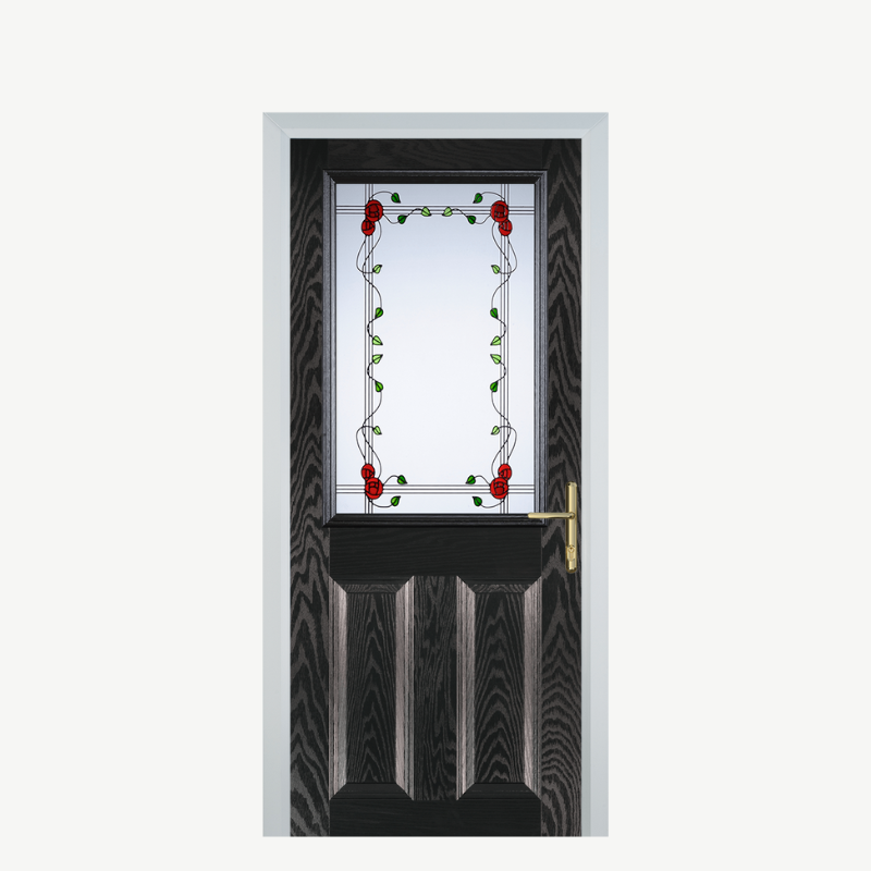 Introducing the Door F 2 Panel 1 Square Black Brown Mackintosh Rose, a stunning blend of style and durability designed to elevate your entryway. This composite door not only enhances the aesthetic appeal of your home but also offers exceptional performance in terms of security and insulation.