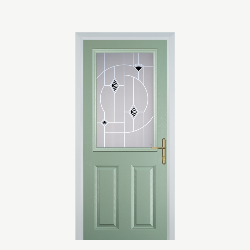 Introducing the Door F 2 Panel 1 Square in Chartwell Green with Murano Black accents, a stunning addition to your home that combines elegance and functionality. Designed to enhance the curb appeal of any property, this composite door is not just a stylish entryway; it’s built for durability and security.