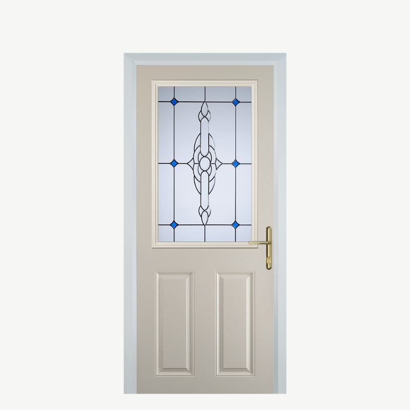 Introducing the Door F 2 Panel 1 Square Cream Crystal Bohemia Blue, a stunning addition to your home that perfectly combines elegance and functionality. This exquisite composite front door not only enhances your property's curb appeal but also provides exceptional durability and security.