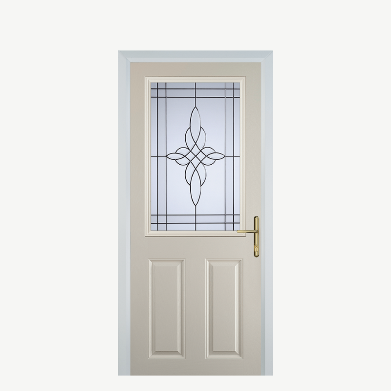 Introducing the Door F 2 Panel 1 Square Cream Crystal Harmony Frost, an exquisite entrance solution that combines style and functionality. This composite front door is designed to enhance the aesthetic appeal of your home while providing security and durability. With its elegant cream finish, it creates a warm and inviting atmosphere.