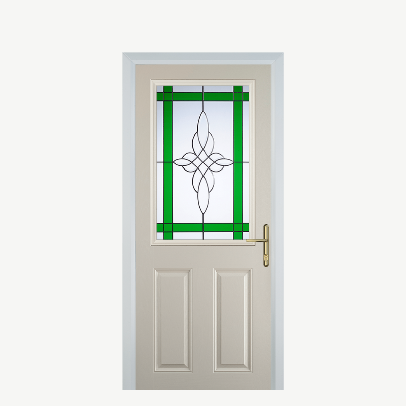 Introducing the exquisite Door F 2 Panel 1 Square Cream Crystal Harmony Green, a stunning addition to any home that seamlessly blends elegance with functionality. This beautifully designed composite front door offers an eye-catching aesthetic while ensuring durability and security for your entryway.