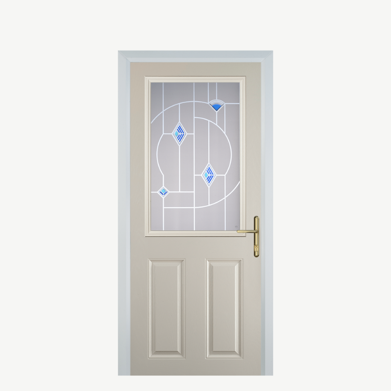 Introducing the Door F 2 Panel 1 Square in Cream Murano Blue, a stunning composite front door designed to enhance the beauty and security of your home. Combining elegance with durability, this door is perfect for those seeking a stylish yet practical entrance.