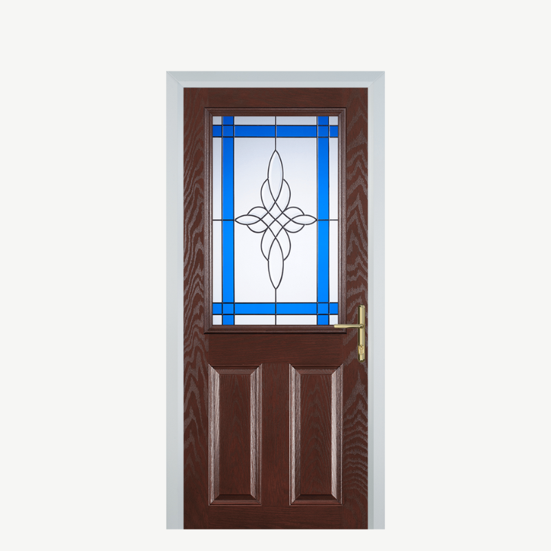 Introducing the Door F 2 Panel 1 Square in Dark Wood with Crystal Harmony Blue, a stunning addition to your home that combines elegance and functionality. Designed for those who appreciate sophistication, this door is more than just an entryway; it is a statement piece that enhances the aesthetic of any property.