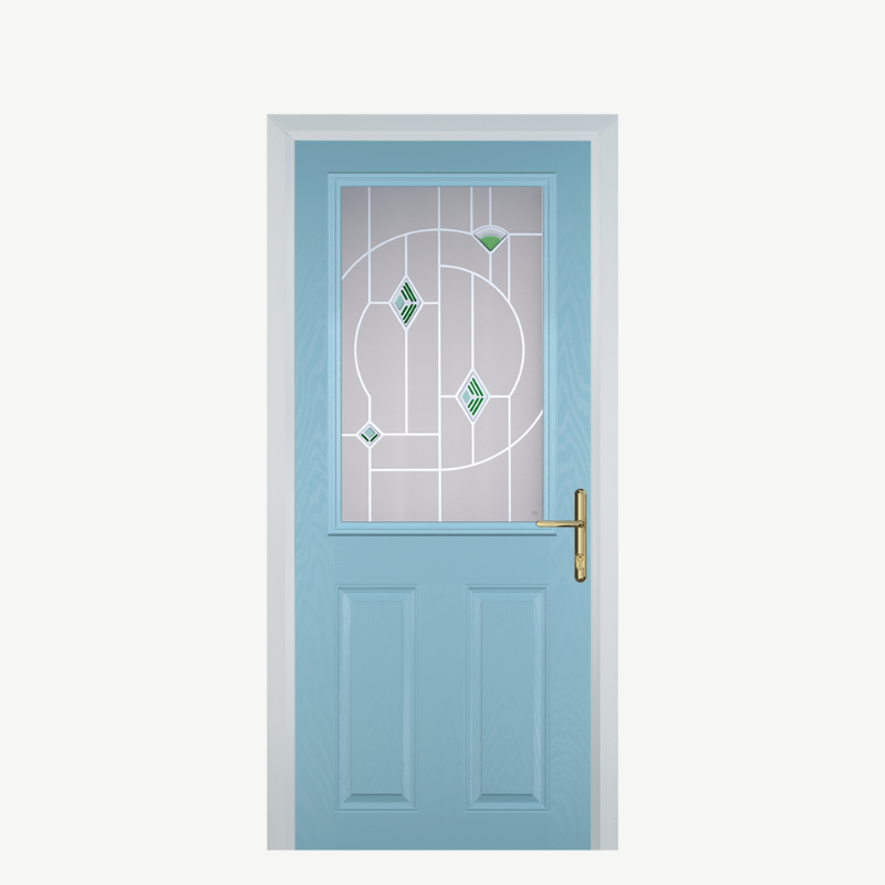 Introducing the Door F 2 Panel 1 Square in a stunning Duck Egg Blue Murano Green finish, a perfect blend of elegance and durability. This composite front door not only enhances your home's curb appeal but also provides the security and insulation you need. It's a stylish choice for homeowners looking to make a statement.
