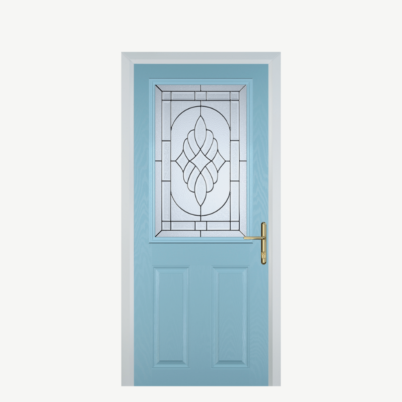 This door offers a unique balance of beauty and practicality. The soft, muted tone of Duck Egg Blue adds a touch of sophistication to your entrance, effortlessly blending with various architectural styles. Its two-panel design provides a classic look, while the square top adds a modern twist.