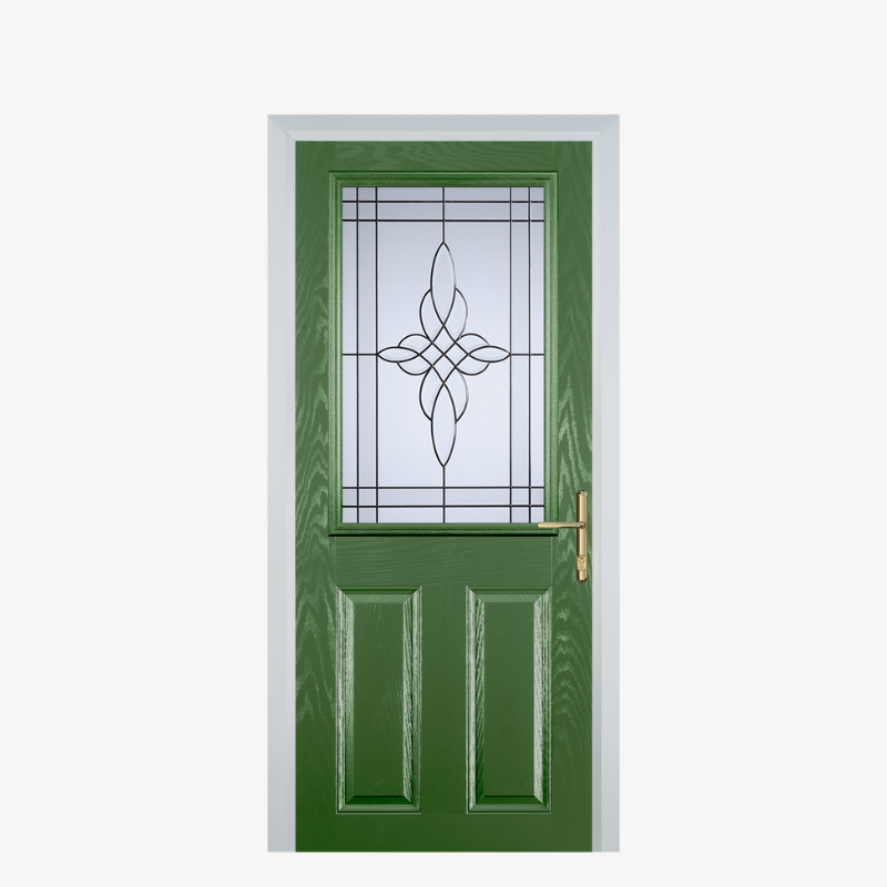 Introducing the Door F 2 Panel 1 Square in a striking Fern Green color, a perfect blend of elegance and functionality for your home. This composite front door not only enhances your property’s curb appeal but also provides superior durability and security.