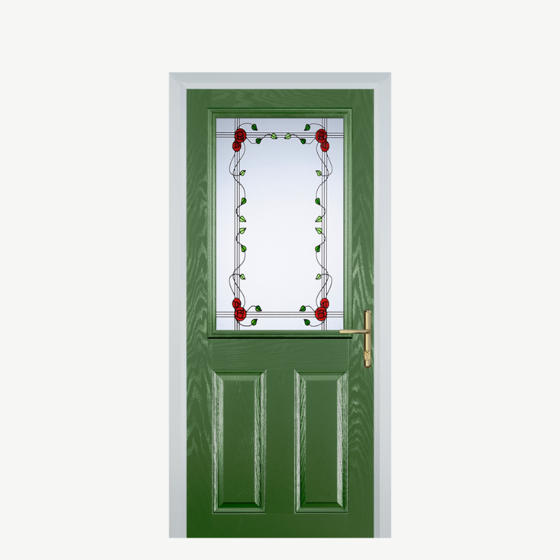 Introducing the Door F 2 Panel 1 Square in a stunning Fern Green color, designed to elevate the entrance of any home. This composite front door not only provides security and durability but also serves as a stylish statement piece that enhances curb appeal.
