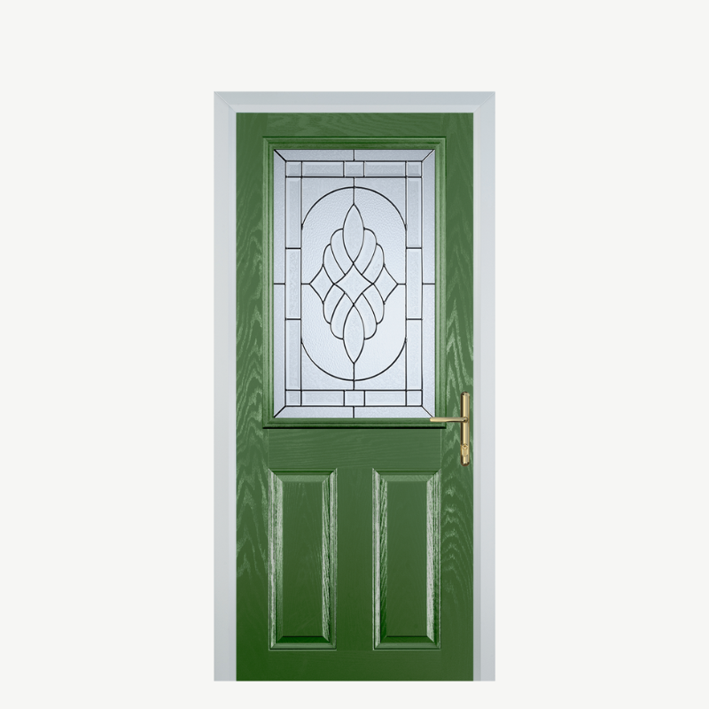 Introducing the Door F 2 Panel 1 Square in a stunning Fern Green finish, an elegant addition to your home that combines style and functionality. This composite front door is designed to make a lasting impression while ensuring the security and comfort of your living space.