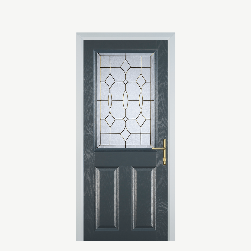 Introducing the Door F 2 Panel 1 Square Grey Brass Art Clarity, a striking combination of modern design and functional elegance. This composite front door serves as a statement piece for any home, enhancing curb appeal while ensuring security and durability. Perfect for homeowners looking to elevate their entryway, this door seamlessly blends style with practicality.
