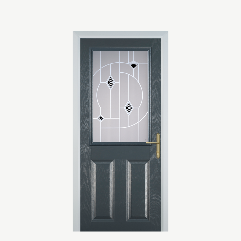 Introducing the Door F 2 Panel 1 Square Grey Murano Black, a stunning addition to any home that combines style, durability, and security. This composite front door is designed to enhance the aesthetic of your entryway while providing exceptional performance and peace of mind.