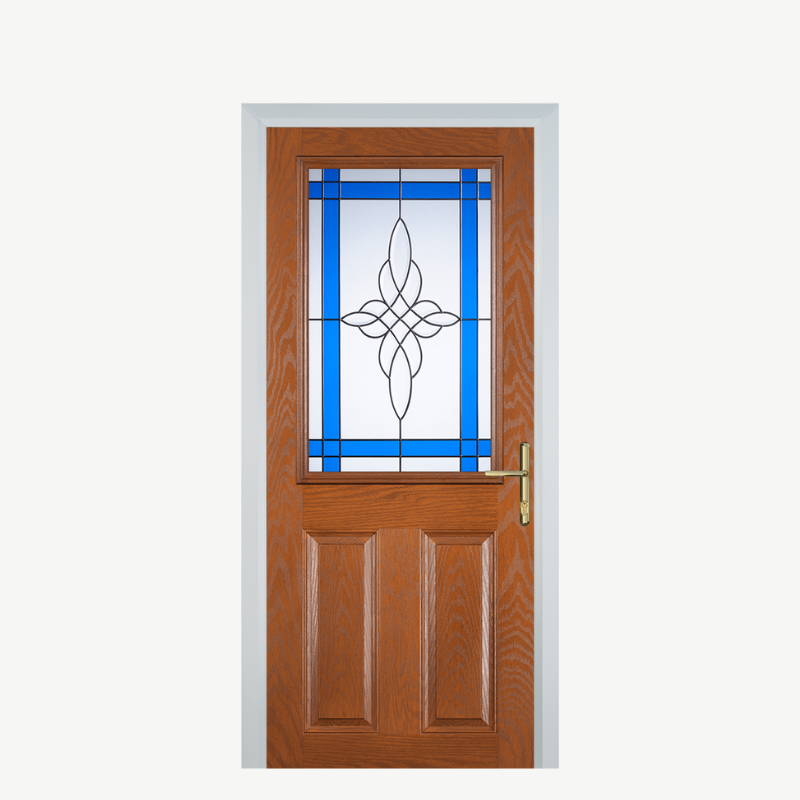 The Door F 2 Panel 1 Square Oak Crystal Harmony Blue is more than just a door; it enhances your home's curb appeal while providing the security and weather protection you need. Ideal for front entrances or as a statement piece inside your home, it offers both style and functionality.