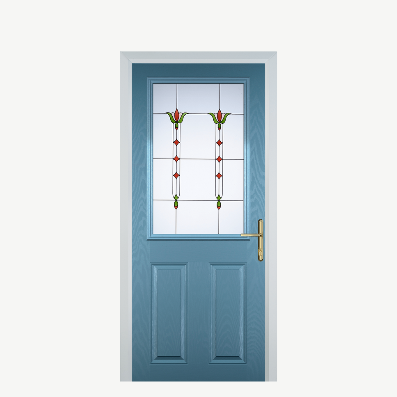 Introducing the Door F 2 Panel 1 Square in Pastel Blue Fleur, a stunning addition to any home that combines aesthetic appeal with exceptional functionality. This composite front door effortlessly enhances your property's curb appeal while providing the durability and security you need.