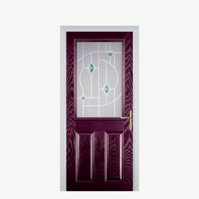 Introducing the Door F 2 Panel 1 Square in Purple Violet Murano Green, a stunning addition to your home that combines elegance with functionality. This composite front door not only elevates your entryway but also provides superior security and insulation, making it a perfect choice for any modern home.