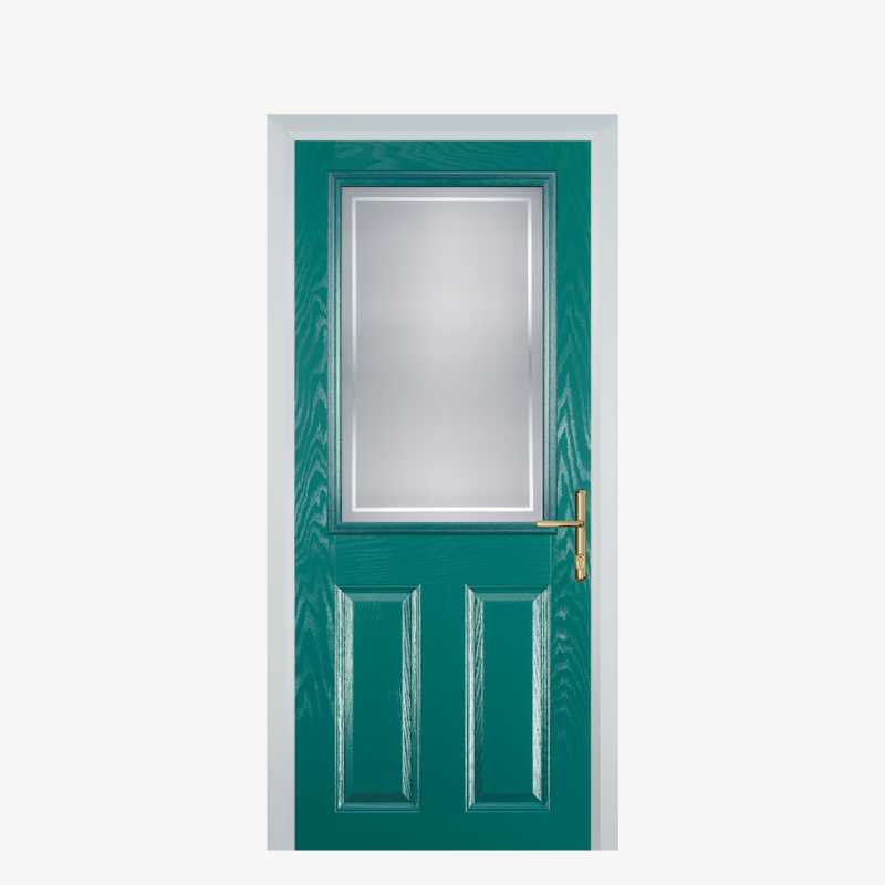 Introducing the Door F 2 Panel 1 Square in Turquoise Blue Enfield, a stunning addition to any home that combines contemporary style with exceptional durability. This composite front door not only enhances your entryway's aesthetic appeal but also provides long-lasting performance and security.