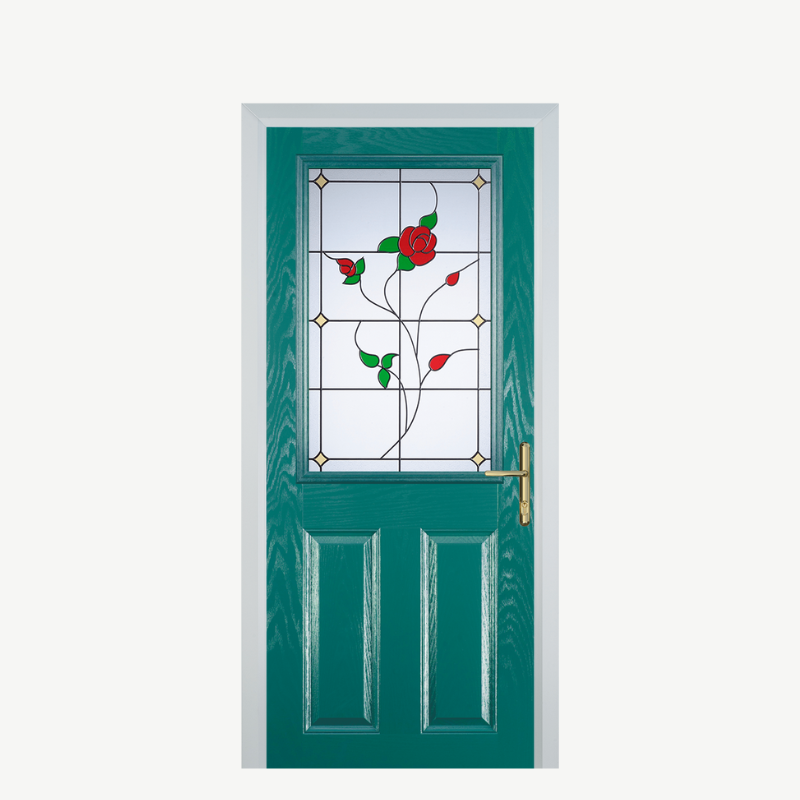 Introducing the Door F 2 Panel 1 Square in a striking Turquoise Blue, a perfect blend of elegance and contemporary design. This composite front door not only enhances the aesthetic of your home but also provides exceptional durability and security.