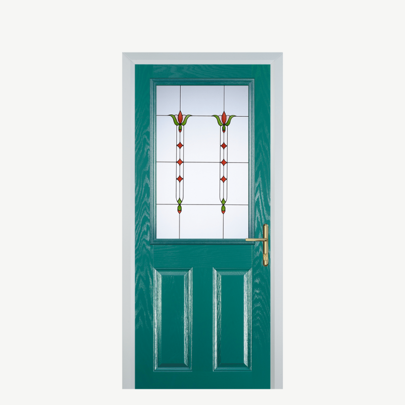 Introducing the Door F 2 Panel 1 Square in a stunning Turquoise Blue, a perfect blend of style and functionality. This exquisite composite front door is designed to make a bold statement while providing superior durability and security for your home. Transform your entrance with a vibrant touch that reflects your personality and enhances curb appeal.