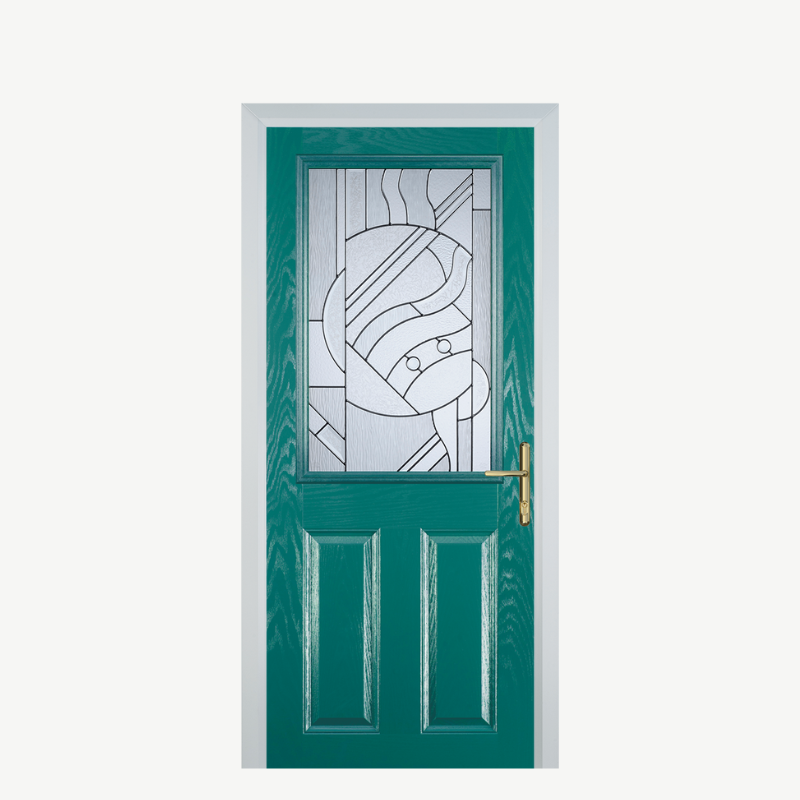 Introducing the Door F 2 Panel 1 Square in Turquoise Blue, a stunning addition to your home that blends artistic design with practical function. This composite front door not only enhances your entryway with its vibrant color and modern aesthetic but also offers durability and security.