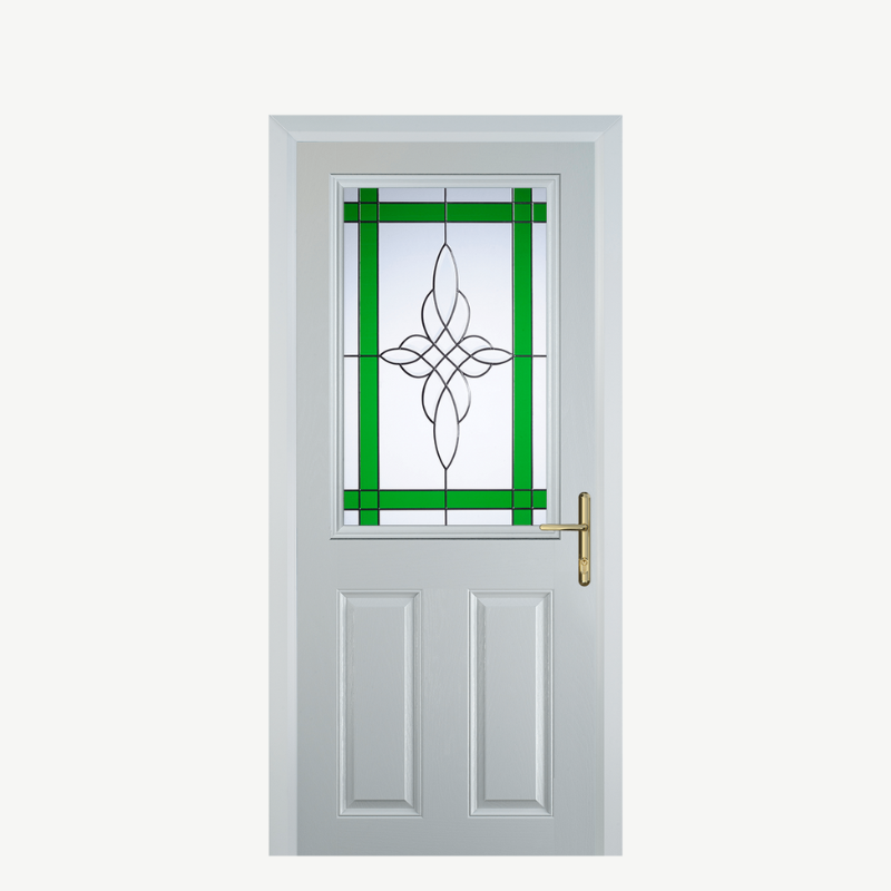 Introducing the Door F 2 Panel 1 Square White Crystal Harmony Green, an exquisite addition to your home that combines elegance and functionality. Crafted to enhance your entrance, this composite front door not only boosts curb appeal but also offers superior security and energy efficiency.