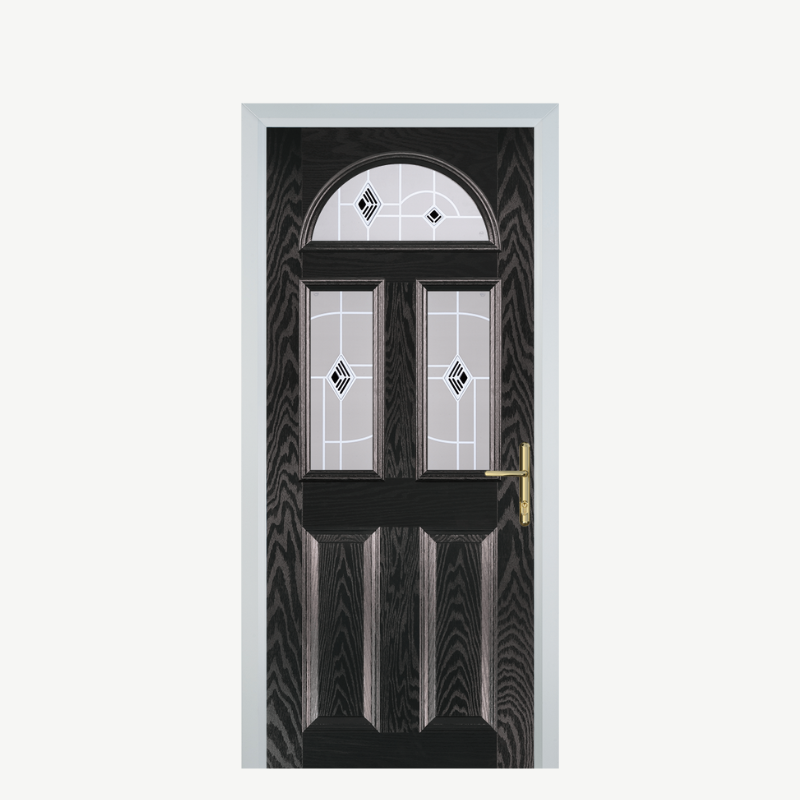 Introducing the Door G 2 Panel 1 Arch in Black Brown Murano Black, a stunning addition to any home that blends style and durability. This composite front door is designed to elevate your entrance while providing exceptional security and insulation.