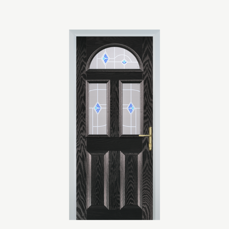 Introducing the Door G 2 Panel 1 Arch in Black Brown Murano Blue, a perfect fusion of elegance and durability. This composite front door is designed to enhance the aesthetic appeal of your home while providing superior functionality. Crafted with precision, it serves as a stunning entryway that welcomes guests with style.