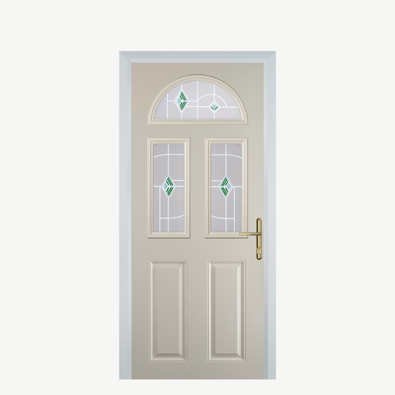 Introducing the Door G 2 Panel 1 Arch in Cream Murano Green, an exquisite addition to your home that seamlessly blends style and functionality. This beautifully crafted composite front door not only enhances your property's curb appeal but also provides superior durability and security.
