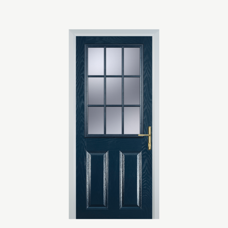 Crafted from durable composite materials, this door is resistant to warping, cracking, and fading. Maintenance is minimal; simply wipe down with a damp cloth to keep it looking fresh. Elevate your home with the Door K 2 Panel 1 Grill in blue, where style meets practicality.