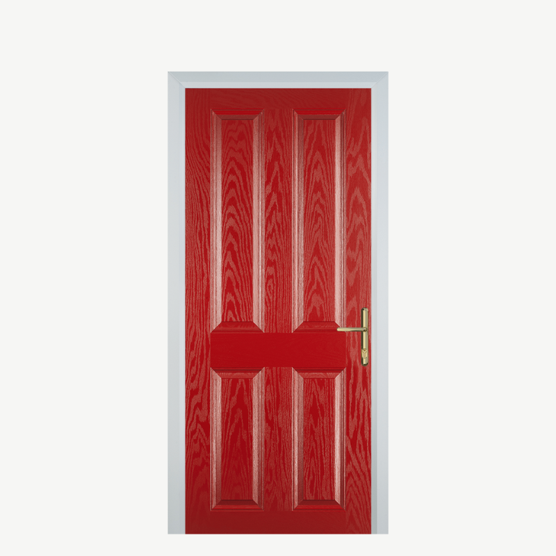 Introducing the Door Q 4 Panel Red, a stunning addition to your home that combines style and security. This composite front door is designed to provide durability and elegance, making it the perfect choice for any homeowner looking to enhance their entrance with a striking red hue.