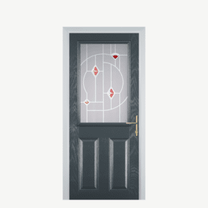 Door F 2 Panel 1 Square Poppy Red (High Gloss) 3 Drop Diamond Green